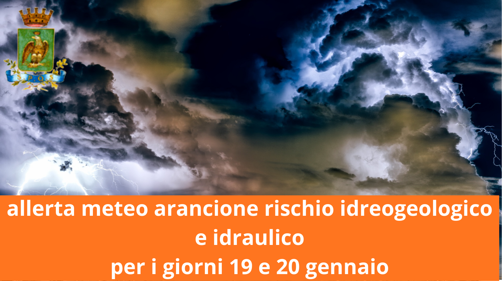 Si porta a conoscenza della popolazione che con ordinanza sindacale n. 1 del 18/01/2026 emessa a seguito dell’allerta meteo regionale di rischio idreogeologico e idraulico è stato ordinato: