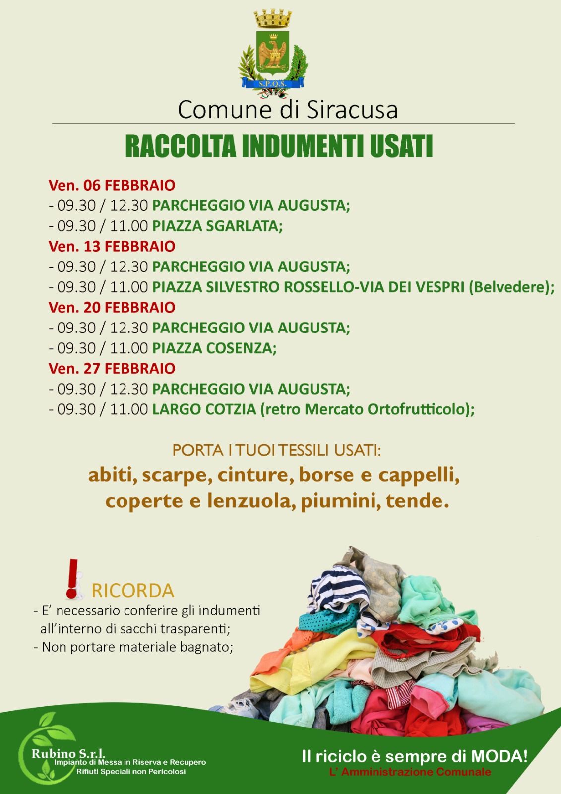 A cura di Settore Igiene Urbana e Verde Pubblico - Servizi Cimiteriali e Igienico Sanitari Via per Floridia, C.da Fusco p.1, 96100