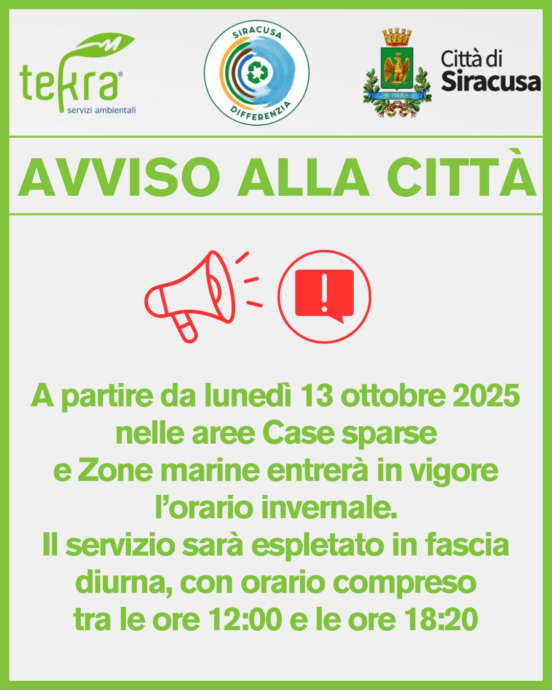 Vi invitiamo a rispettare i nuovi orari per garantire un servizio efficiente e un territorio sempre più pulito