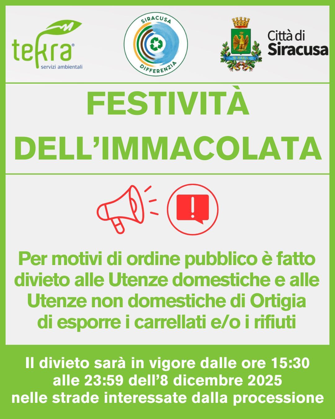 - È vietato alle Utenze domestiche e alle Utenze non domestiche di Ortigia esporre carrellati e/o rifiuti