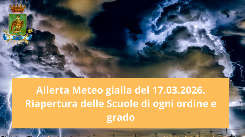 - La riapertura delle Scuole di ogni ordine e grado, delle scuole paritarie, delle strutture sportive pubbliche, dei Cimiteri e dei Giardini Pubblici, dei mercati rionali, per il giorno 17.03.2026.