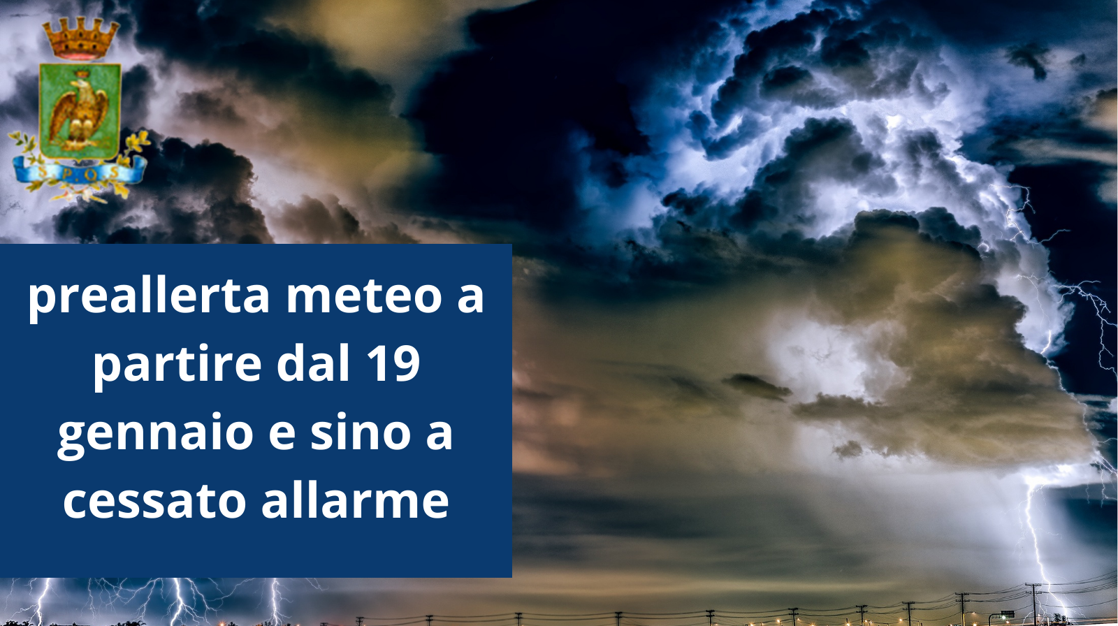Si informa la cittadinanza che, a partire dalle prime ore di lunedì 19 gennaio, sono previste condizioni meteorologiche avverse di forte intensità, caratterizzate da: