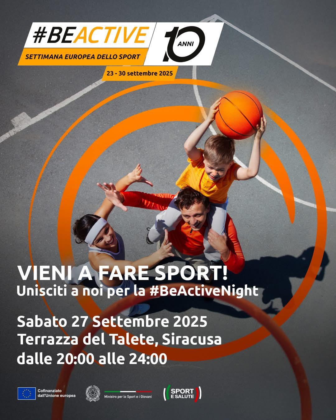 Anche quest’anno Siracusa sarà tra le città protagoniste della Settimana Europea dello Sport, l’iniziativa promossa dalla ommissione Europea e coordinata in Italia da Sport e Salute. Per gli appassionati dell’attività sportiva e gli amanti degli stili di vita sani, l’appuntamento è per sabato prossimo (27 settembre) sul terrazzo del parcheggio Talete dove si terrà il “BeActive Night”, diventato ormai un appuntamento fisso.