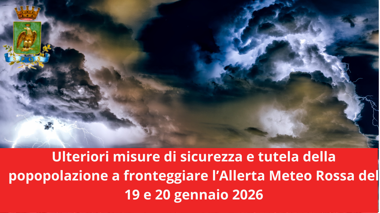 - sino alle ore 24.00 del 20/01/2026, la chiusura delle scuole di ogni ordine e grado, pubbliche e private, degli asili nido pubblici e privati ed il divieto di attività collettive all’aria aperta;