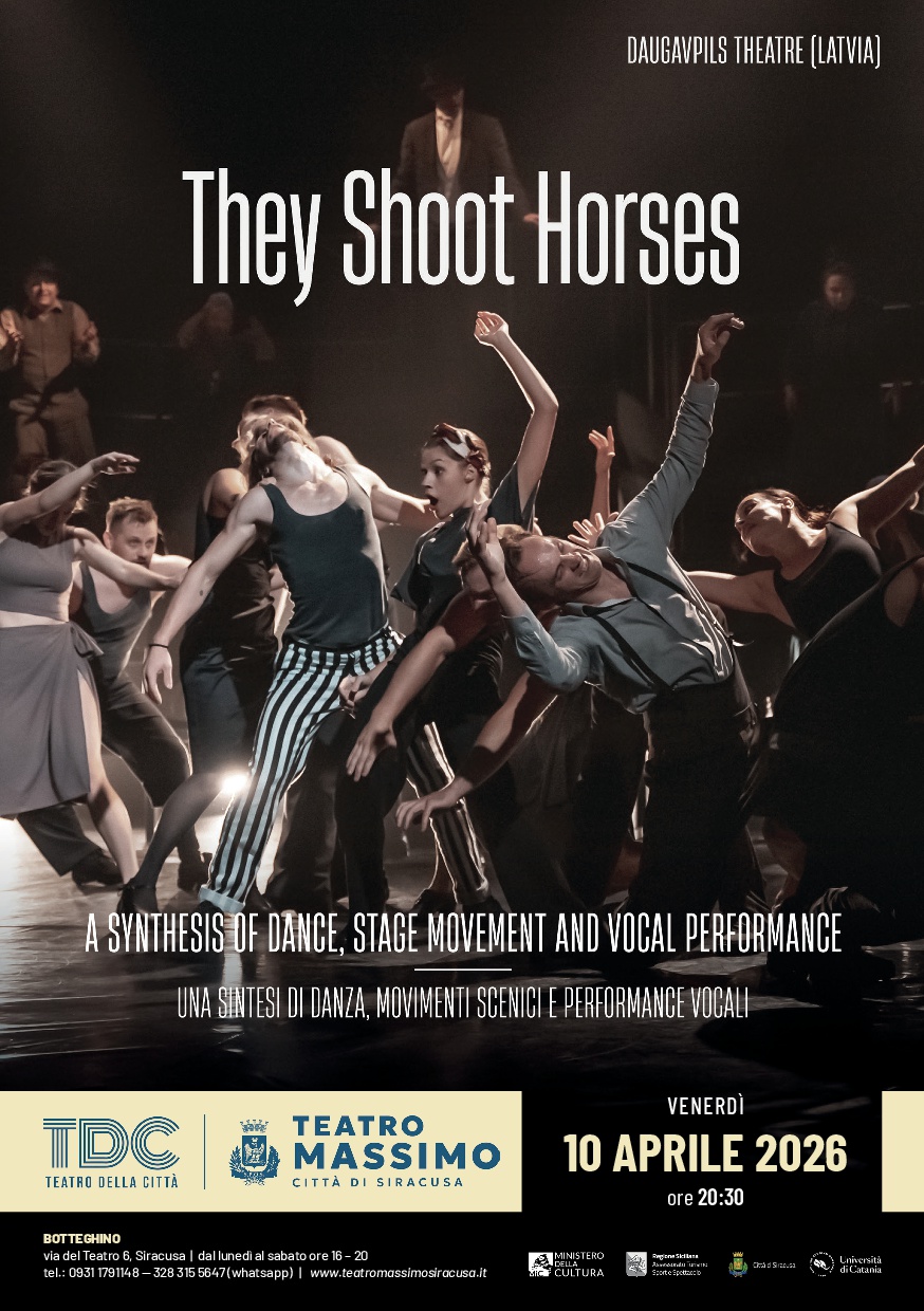 (They Shoot Horses). Per la prima volta in Sicilia, una compagnia tea- trale lettone presenta una produzione unica, una sintesi di danza, moviemento scenico e perfor- mance vocale con 26 artisti sul palco.