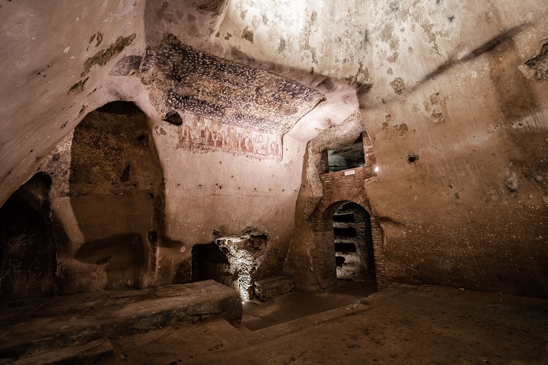 Anche in questo caso la genesi e lo sviluppo della catacomba sembrano riecheggiare i prototipi romani: simile l'articolazione del cimitero in più regioni (quattro per la precisione, denominate A-D), nate anche dall'accorpamento di ipogei di diritto privato (ipogeo anonimo della regione D) oltre che dal reimpiego di preesistenze di natura culturale (è il caso del cosiddetto sacello pagano della regione C, databile in età ellenistica); simile lo schema delle gallerie con loculi impilati alle pareti nelle regioni A e B, presumibilmente le più antiche (metà del terzo secolo); l'organizzazione spaziale dei cubicula di varie dimensioni, disposti regolarmente lungo le due gallerie principali della regione C e affini alle soluzioni adottate nei cimiteri cristiani dell'Etruria meridionale. Non ci sorprende la trasformazione di una zona riservata della catacomba, destinata a sepolture privilegiate, in un'area di culto nel periodo successivo all' utilizzazione funeraria perchè dinamiche simili di interventi monumentali le notiamo nelle più note catacombe romane (oratorio bizantino " con triplice strato di affreschi, aperto al culto almeno fino alla metà del tredicesimo secolo" con un affresco riproducente i "Quaranta Martiri di Sebastia", databile nella prima metà dell'ottavo secolo secondo uno studio recente).
